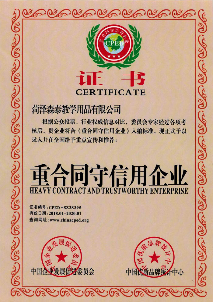 菏澤森泰教學(xué)用品有限公司地址位于中國(guó)牡丹之鄉(xiāng)山東-菏澤,公司成立于2008年,是菏澤市較早進(jìn)入教學(xué)儀器生產(chǎn)、研發(fā)、倉(cāng)儲(chǔ)、銷(xiāo)售為一體的專(zhuān)業(yè)化公司。主要生產(chǎn)銷(xiāo)售:小學(xué)數(shù)學(xué)、小學(xué)科學(xué)、初高中學(xué)物理、化學(xué)、生物、地理、數(shù)學(xué)實(shí)驗(yàn)室成套儀器設(shè)備,小學(xué)勞技器材,音樂(lè)、體育、美術(shù)器材等。公司是中國(guó)AAA級(jí)重質(zhì)量、重合同、守信用企業(yè)。